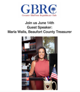 Greater Bluffton Republican Club – Social hour starts at 5:30pm with the Pub & B’s Kitchen staying open for dinner before we hear from Maria Walls. Join us!